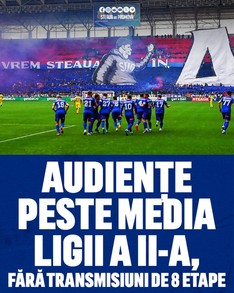 În acest context, Steaua București produce audiențe peste media Ligii a II-a, chiar și în condiții de programare nefavorabilă.
