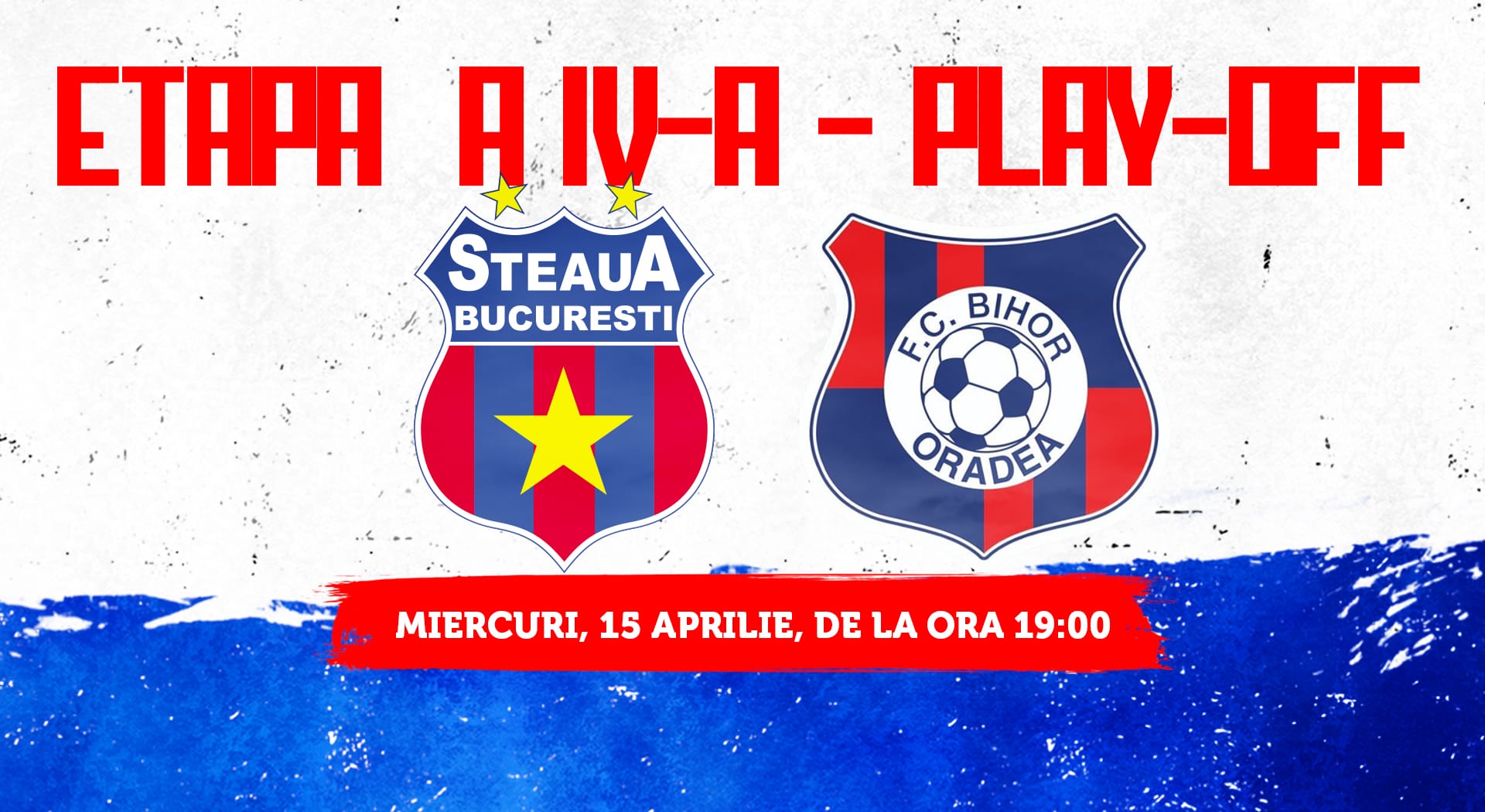Etapa 4, play-off: Steaua Bucureşti – FC Bihor Oradea🗓️ Miercuri, 15 aprilie, de la ora 19:00🏟️ Stadionul Steaua🎫 Bilete📽️ Meciul este transmis de DGS1 Aici, albumul de meci. Source Navigare în articole Etapa a III-a, play-off: Sepsi OSK Sfântu Gheorghe – Steaua Bucureşti Împreună spre Liga 1