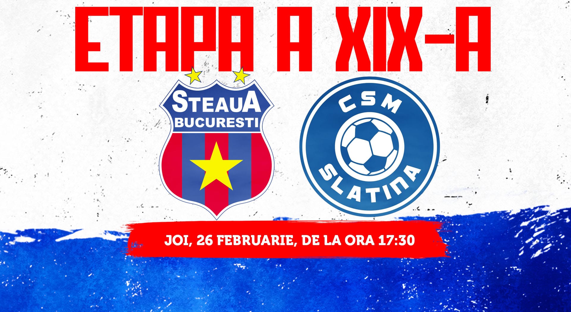 Etapa 19: Steaua Bucureşti – CSM Slatina🗓️ Joi, 26 februarie, de la ora 17:30🏟️ Stadionul Steaua🎫 Bilete TBA📽️ Meciul este transmis de DGS1 Aici, albumul de meci. Source Navigare în articole Cerem public explicații de la FRF! ÎCCJ: Palmaresul Stelei rămâne la CSA Steaua