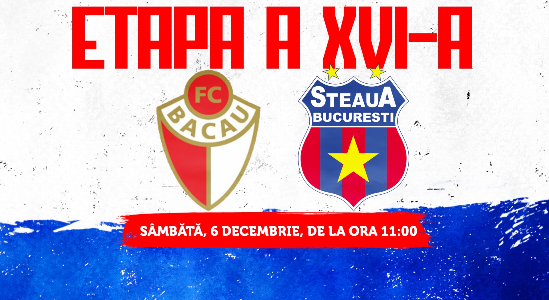 Etapa 16: FC Bacău – Steaua Bucureşti 🗓️ Sâmbătă, 6 decembrie, de la ora 11:00🏟️ Stadionul Baza Sportivă FC Bacău (Ruşi-Ciutea)🎫 Bilete TBA📽️ Meciul este transmis de TBA Aici, albumul de meci. Source Navigare în articole Etapa a XV-a: Steaua Bucureşti – Ceahlăul Piatra Neamţ