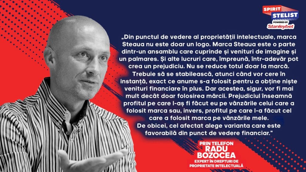 „Din punctul de vedere al proprietății intelectuale, adică al brandurilor, litigiul se vede așa: marca Steaua este o parte dintr-un ansamblu care cuprinde și venituri de imagine, și un palmares, și alte lucruri care, împreună, într-adevăr, pot crea un prejudiciu.”